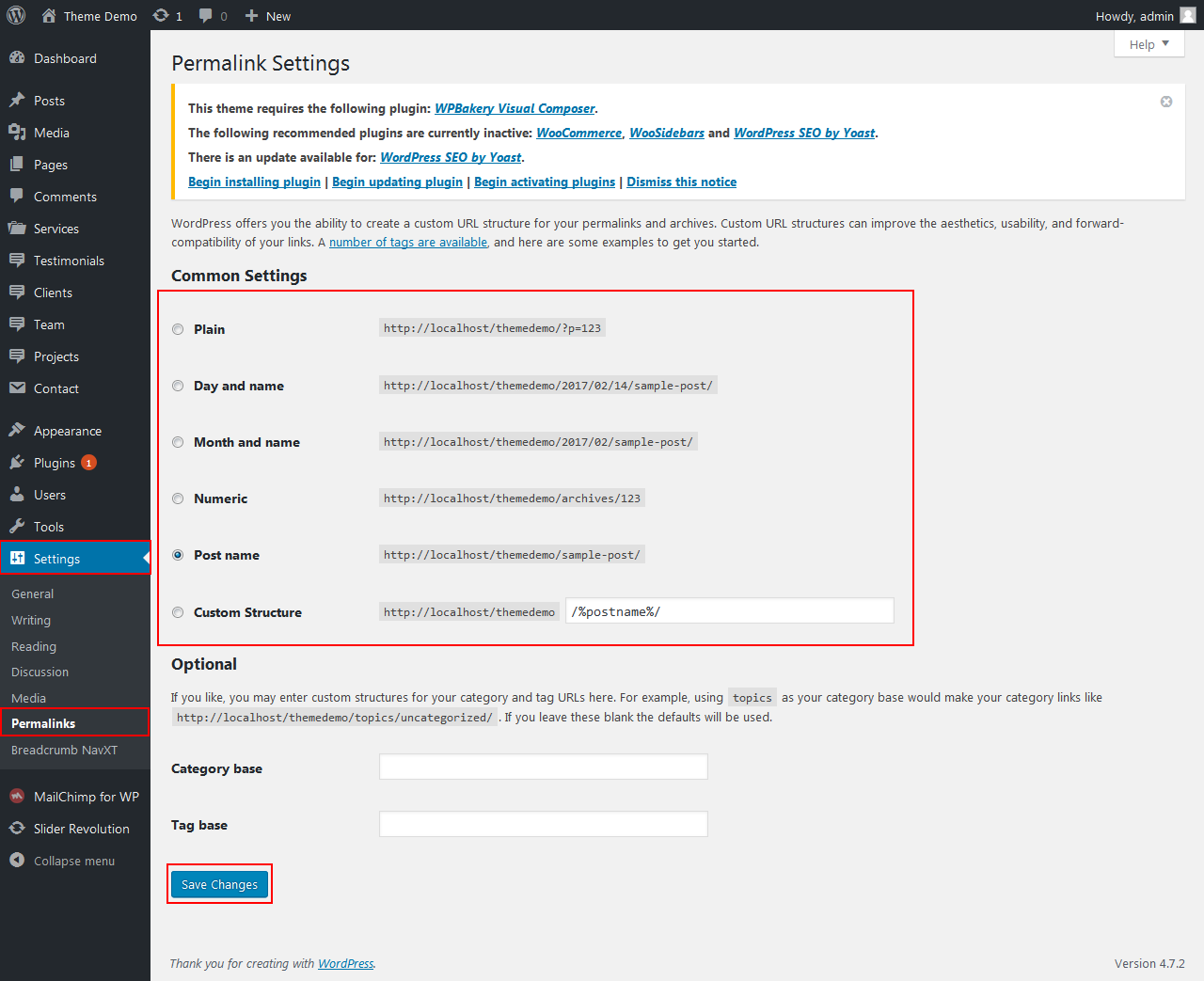 tep 1: Go to Settings > Permalinks and select one from common settings