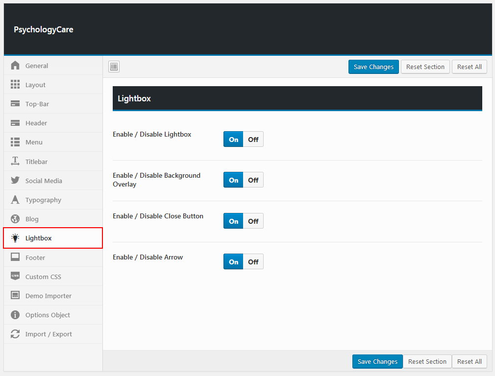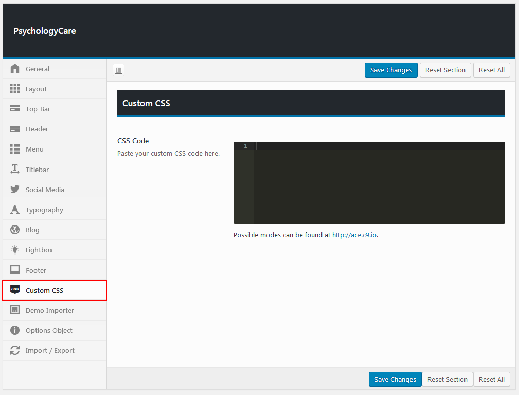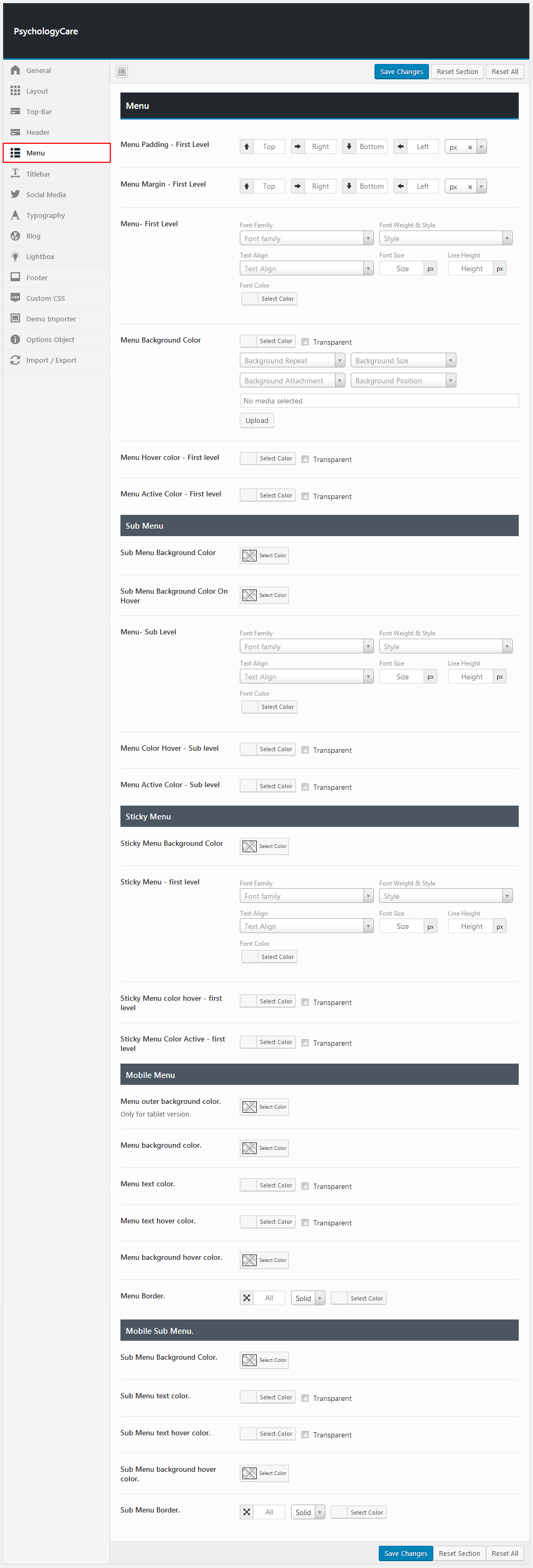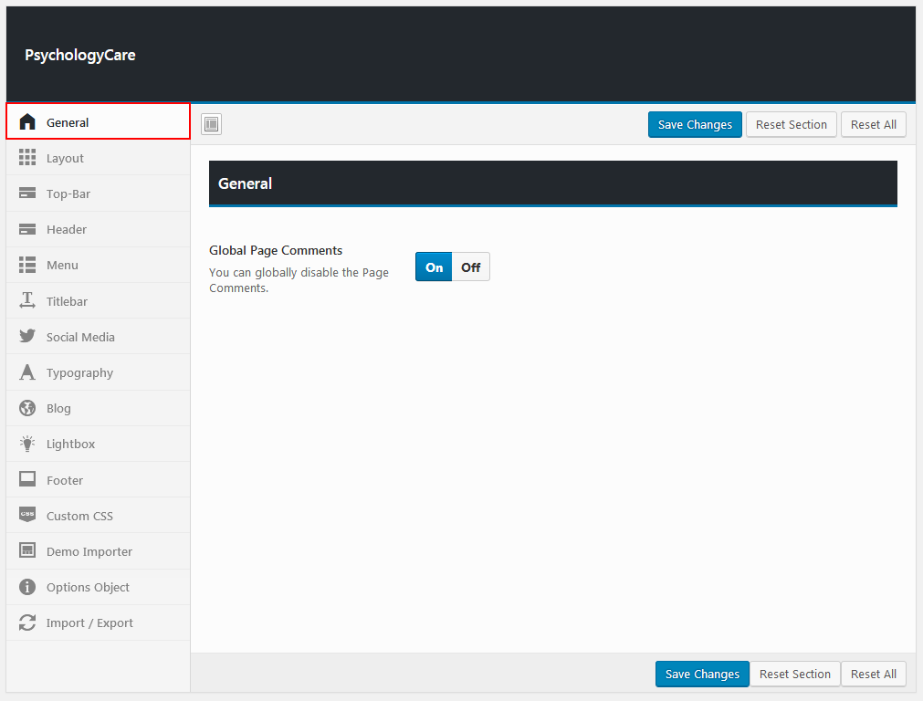 Theme options is a custom admin page to all of the theme's extensive configuration options. It allows users to change theme settings without modifying theme files or touching any code. To view the panel, navigate to the Theme Options in the left-hand menu. Here you have the ability to alter many core aspects that make up how your theme looks and behaves.