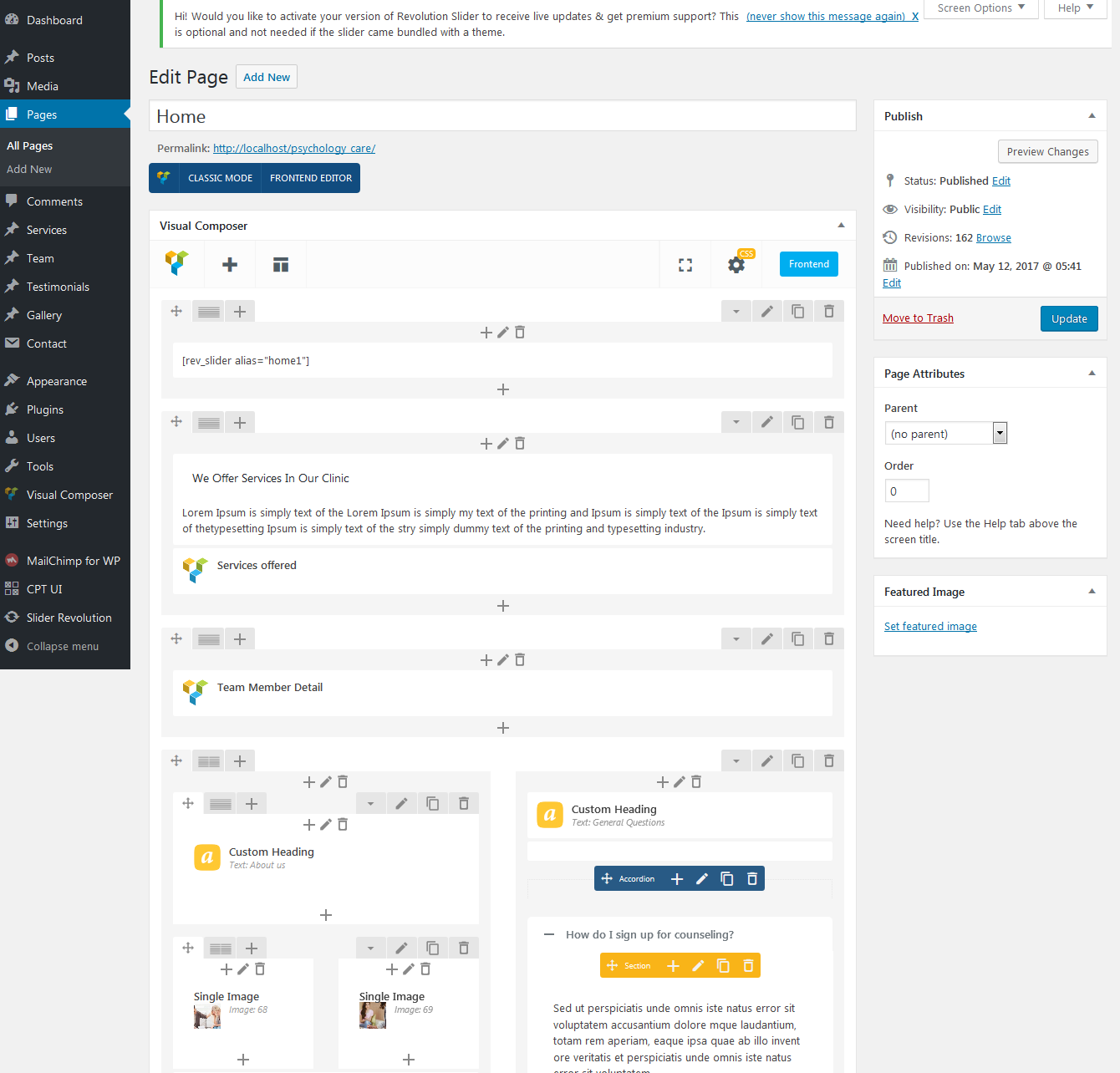 This theme includes support for the Visual Composer plugin. Visual Composer come with a lots of drag and drop modules to quickly and easily building your pages.